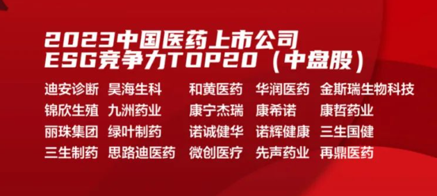 尊龙凯时制药再度荣登 “2023年中国医药上市公司ESG竞争力TOP20”榜单